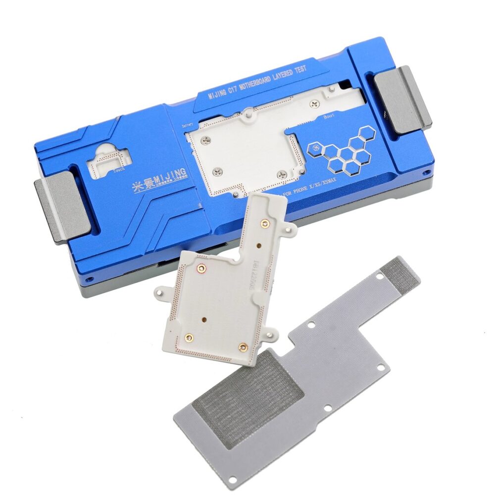 The MiJing C17 Main Board Function Testing Fixture is a professional diagnostic tool designed specifically for testing and troubleshooting the main logic boards of iPhone X, XS, and XS Max devices. It enables technicians to easily connect both the upper and lower motherboard layers to power, screen, and other test points before full reassembly — helping identify issues early, reduce rework, and prevent unnecessary damage after installation.